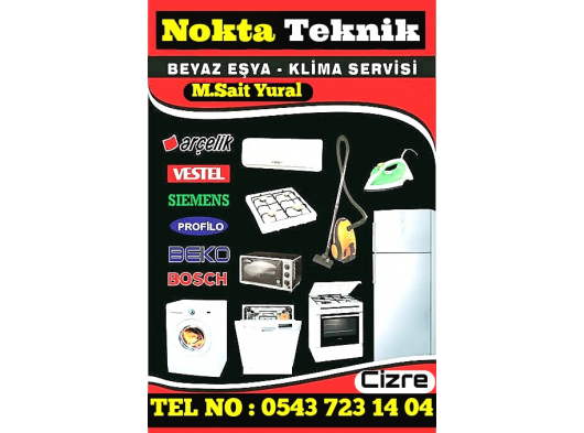 NOKTA TEKNİK BEYAZ EŞYA SERVİSİ TEL NO : 0543 723 14 04