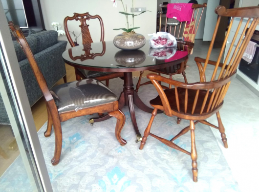 Yuvarlak cam masa ve modern 4 şık sandalye
